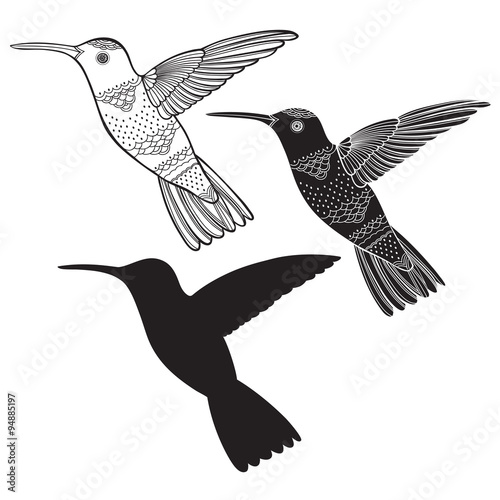Set of hummingbirds isolated on white background. Hand drawn vector illustration.