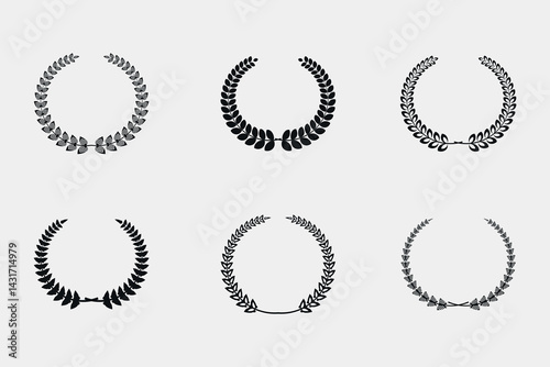 Set of silhouette circular laurel foliate and wheat floral wreaths template design