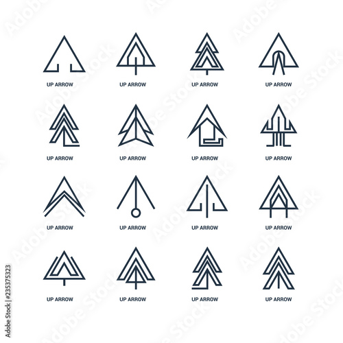 Set Of 16 outline icons such as Up arrow, arrow linear icon