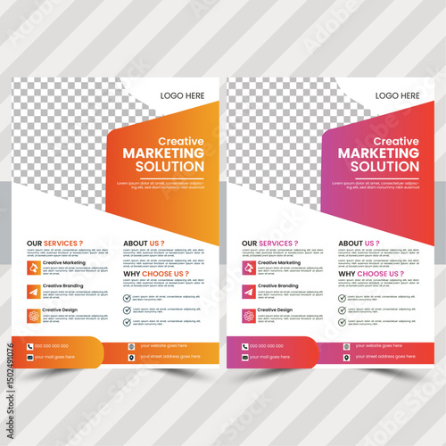 Set of 2 professional A4 flyer templates, modern business designs, colorful creative layouts, minimalist corporate style, abstract IT company flyers,