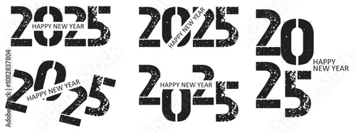 Set of 2025 new year logo. Number of year design. Design elements for greeting card, invitation, calendar, etc. Vector illustration.
