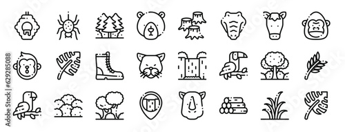 set of 24 outline web jungle icons such as beehive, spider, trees, bear, trunk, crocodile, horse vector icons for report, presentation, diagram, web design, mobile app