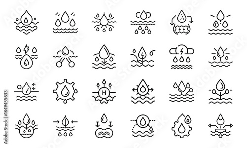 Set of 24 Science and Laboratory Line Icons Chemistry, Biology, Physics, Research, Safety, and Technology Symbols in Minimal Outline Style