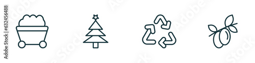 set of 4 linear icons from ecology concept. outline icons included coal, christmas trees, recycling, olives on a branch vector