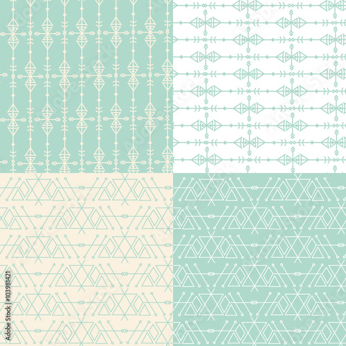 Set of 4 trendy hipster ornament backgrounds,sea blue, white