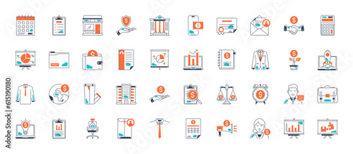 Set of 40 Business icons. Business and Finance web icons premium style. Money, bank, contact, infographic. Icon collection. Vector illustration.