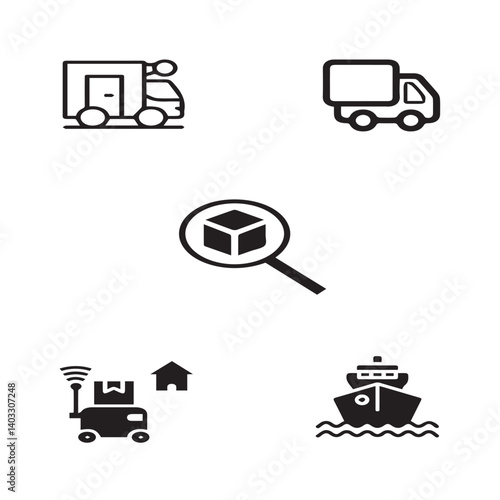 Set of 5 outline logistic and with floral transport, shipment silhouette editable vector isolated