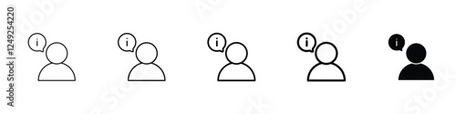 set of 5 pixel perfect Info icon with 1 unexpanded, 1 silhouette, Info icon for informational, help or FAQ sections in digital and web designs