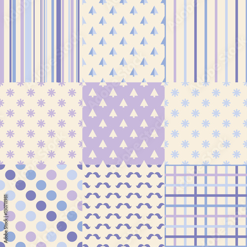 Set of 9 winter holiday backgrounds. Print. Repeating background. Cloth design, wallpaper.