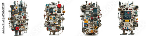 set of A complex machine with buttons and labels, complex machine, complex machine, machine anatomy, png file, technology complex machine, complex mechanism, on a transparent backgrounds
