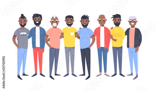Set of a group of different african american men. Cartoon style characters of different ages. Vector illustration people