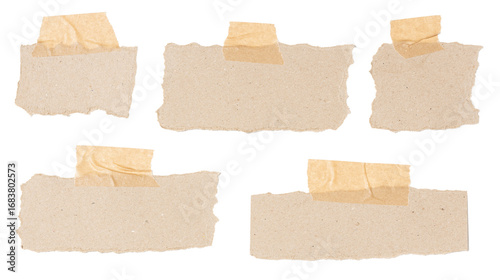 Set of a variety of blank cardboard notes with irregular borders affixed with masking tape cut out