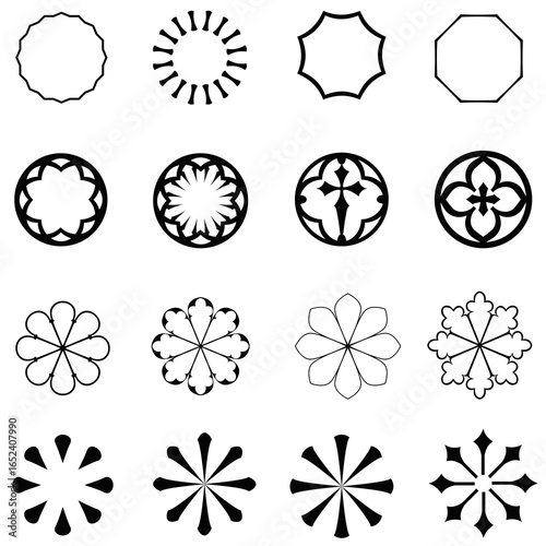 Set of Abstract Geometric Floral Patterns and Mandala Symbols