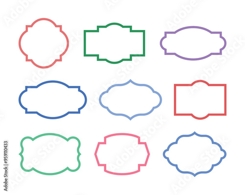 Set of abstract, geometric shapes and classic style frames, borders, labels, tags, cards, boards, picture frames illustrations.