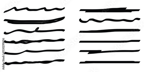 Set of abstract hand drawn lines, underline, highlight lines, underline strokes. Marker pen highlight underline strokes. Highlighter pen scribbles and strokes.