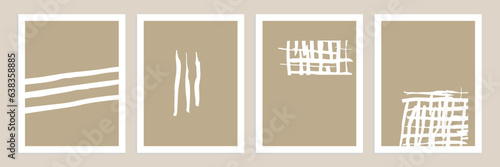 Set of abstract organic shapes, lines and textures in white on neutral nude and beige background.