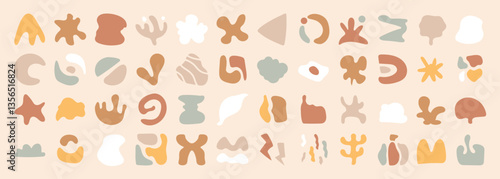 Set of abstract organic shapes vector. Collection of contemporary figure, leaf, flower, sparkle, geometric shape in funky groovy. Cute hippie design element perfect for banner, print, stickers.
