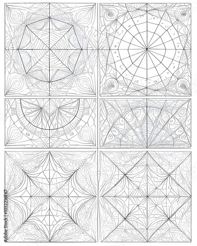 Set of abstract patterns for coloring book. Black and white vector illustration.