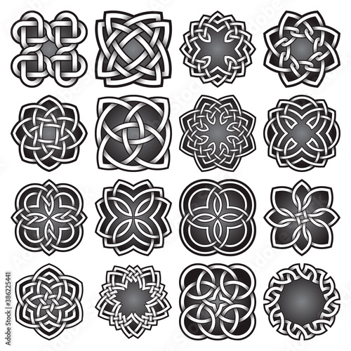 Set of abstract sacred geometry symbols in Celtic knots style. Tribal tattoo signs collection.