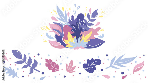 Set of abstract spring leaves on white background, hand drawn design elements. Simple cartoon flat style. Vector flat illustration