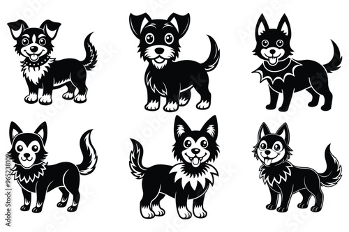 Set of Adorable Halloween Dog Icon Vector Illustration on Transparent Background
