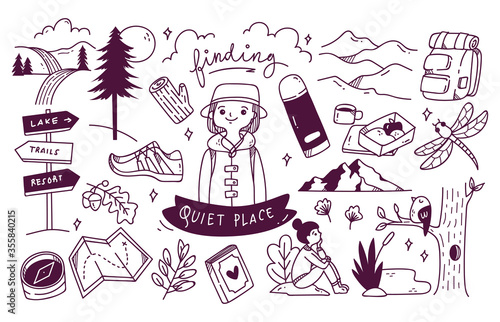 Set of Adventure Doodle Vector Illustration