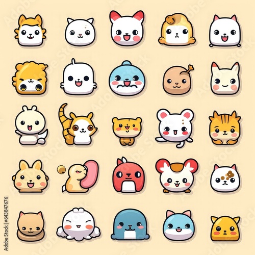 Set of animal faces, face emojis, stickers, emoticons,cartoon funny mascot characters face set