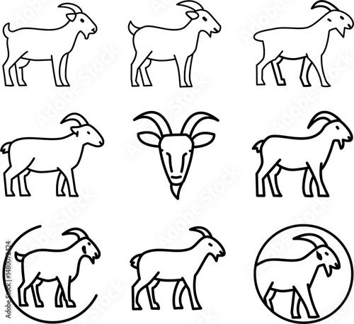 set of animals Set of 9 vector icons of sacrificial goat, eid, eid al adha.