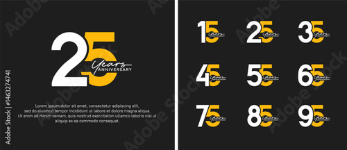 set of anniversary logo flat white and yellow color on black background for celebration moment