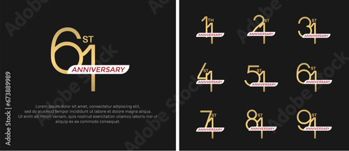 set of anniversary logo gold color and white ribbon on black background for celebration moment