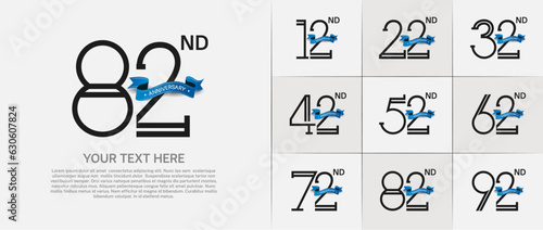 set of anniversary logotype black color with blue ribbon for special celebration event