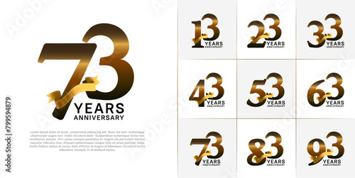 Set of Anniversary Logotype brown color with gold ribbon can be use for special day celebration