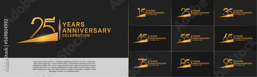 set of anniversary logotype golden color with ribbon for special celebration event
