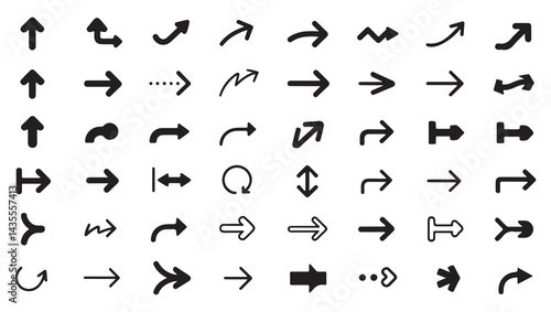 Set of arrow icons in black and white for directional and navigation designs.