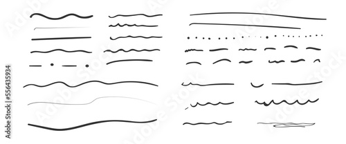 Set of artistic pen brushes.Doodles, ink brushes.Set of vector grunge brushes. Collection of strokes of markers. Set of wavy horizontal lines