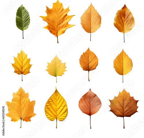 Set of autumn leaf isolated on the transparent background PNG.
