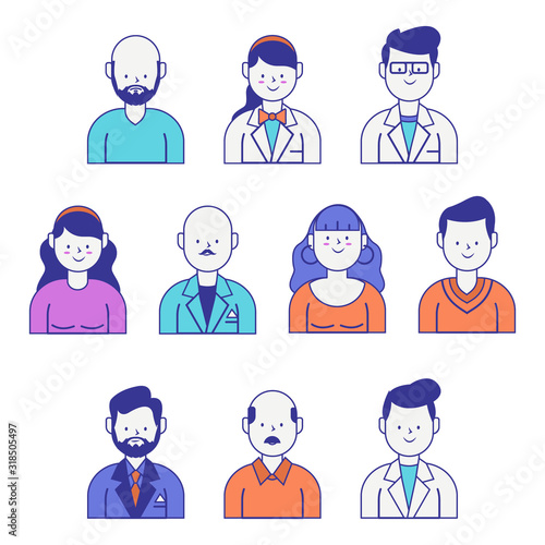 Set of avatar people smiling on the white background