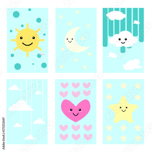Set of baby shower invitations cards, poster, greeting, template, stork, Vector illustrations
