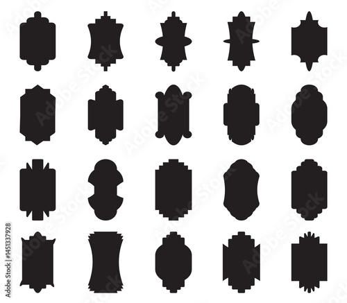 Set of Badge templates in vintage style. Black patch silhouettes. Simple borders template. Empty background for text. Vector illustration.