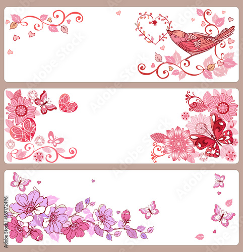 Set of banners with hearts and butterflies for Valentine's Day, Easter greetings