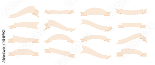 Set of beige ribbon banners in various shapes and styles on a white background. Flat vector illustration for design and decoration purposes.