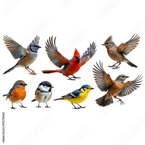 set of birds ,isolated on white background , transparent png image