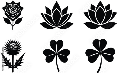 set of black and white flowers