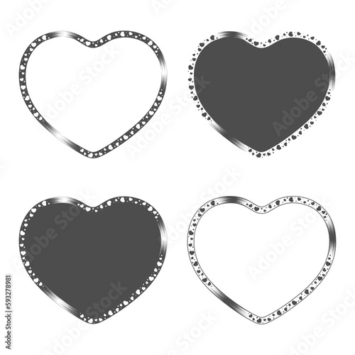 Set of black and white illustrations with heart sign. Isolated vector objects on white background.