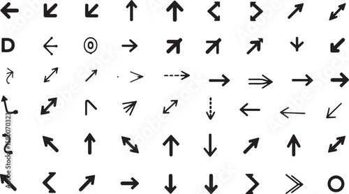 Set of black and white vector alphabet letters and numbers with arrow and symbol icons collection