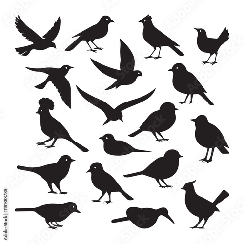 Set of black bird vector icon silhouettes colection