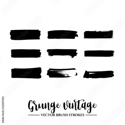 Set of black brush stroke and texture. Grunge vector abstract hand - painted element. Underline and border.