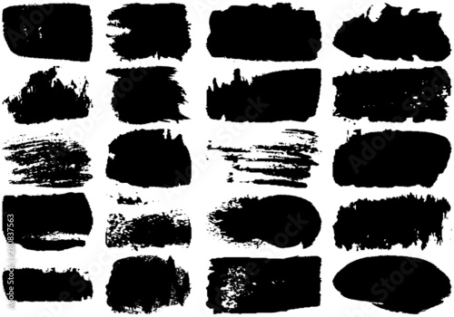 Set of black brush strokes with a dry brush