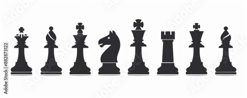 Set of black chess pieces silhouettes on white background, symbolizing strategy and intelligence in minimalist art - Generative ai