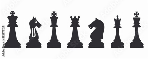 Set of black chess pieces silhouettes on white background, symbolizing strategy and intelligence in minimalist art - Generative ai